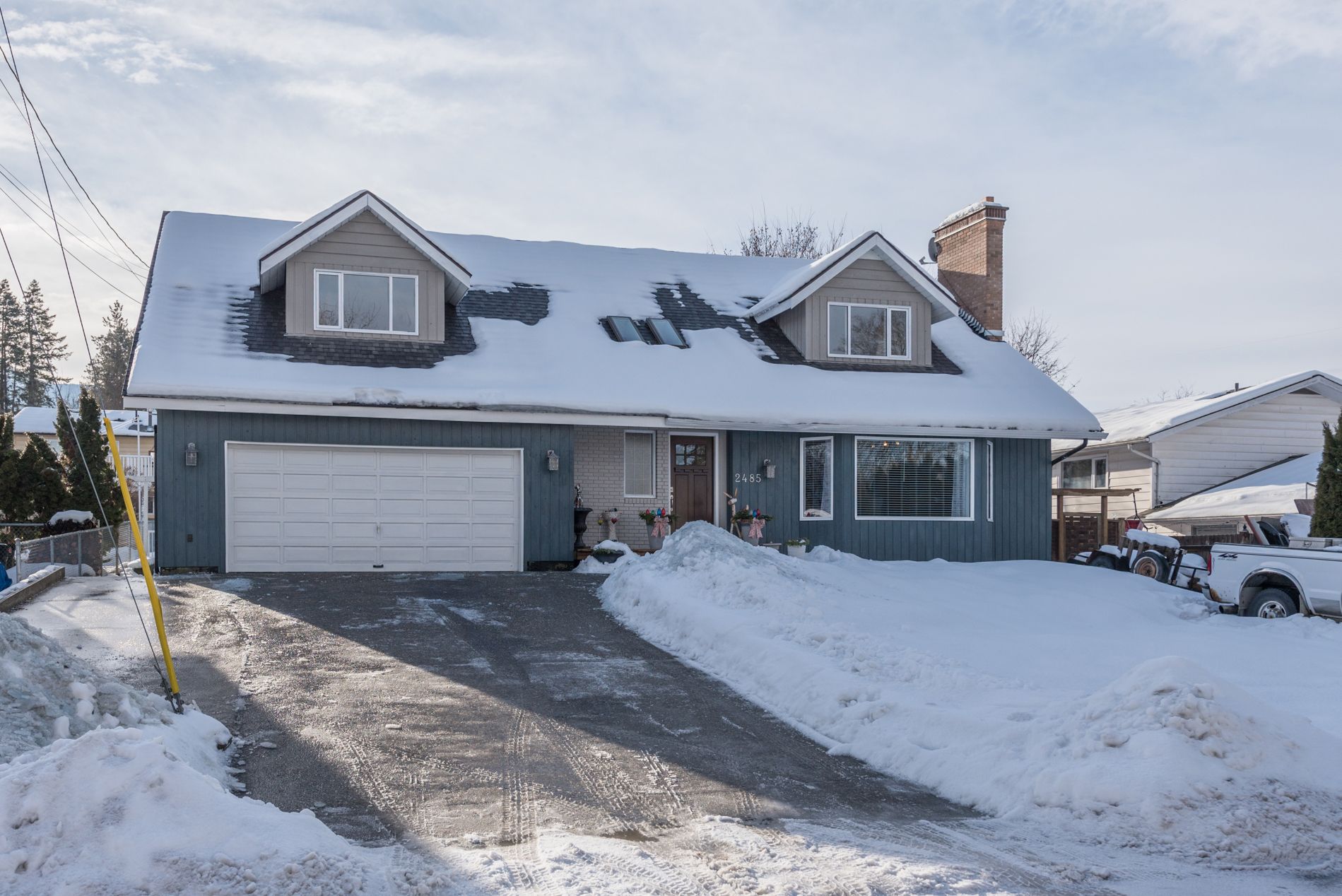 2485 Danallanko Dr. Armstrong, BC. Well built & solid Cape Cod style 3,745 sq. ft., 4 bed, 3.5 bath family home in a friendly Armstrong neighbourhood close to schools, parks, & amenities. Kitchen offers lots of storage and counter space, with island and bar seating areas, plus entry to the back patio and fully fenced yard. Also on main level is a formal dining room, living room with rock-faced fireplace, half bath, and master bedroom with 4 piece ensuite. Upstairs consists of a third bathroom separating two large bedrooms with dormers in each room. The fully finished basement offers a newly built suite...