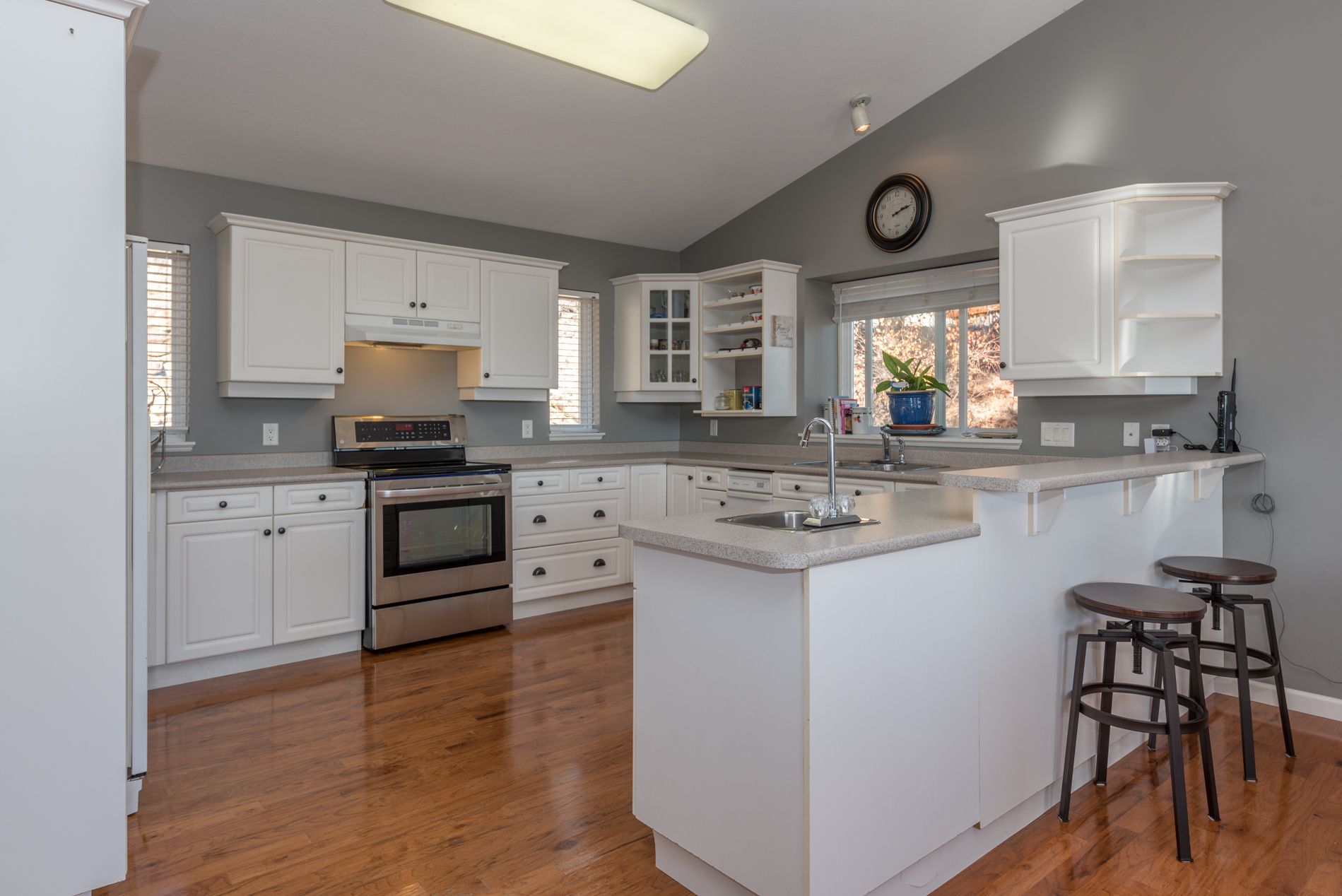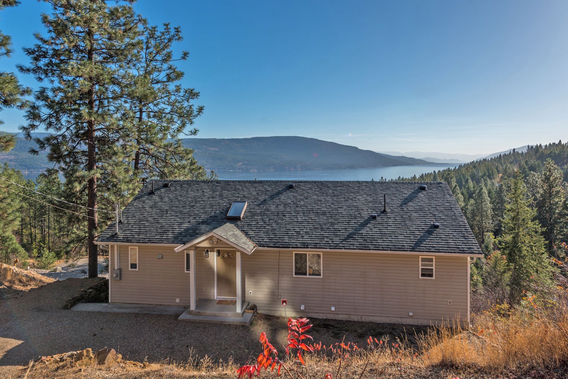 10778 Pinecrest Road, Vernon, BC. Comfortable and well-situated 2,365 sq. ft. 4 bed, 3 bath family home with stunning lake views in Westshore Estates. Open concept kitchen, dining, and family room with large windows and access to a large partially covered deck overlooking Okanagan Lake. Kitchen is bright and spacious, with lots of counter space, bar seating area, and vaulted ceilings. Cozy living room features beautiful...