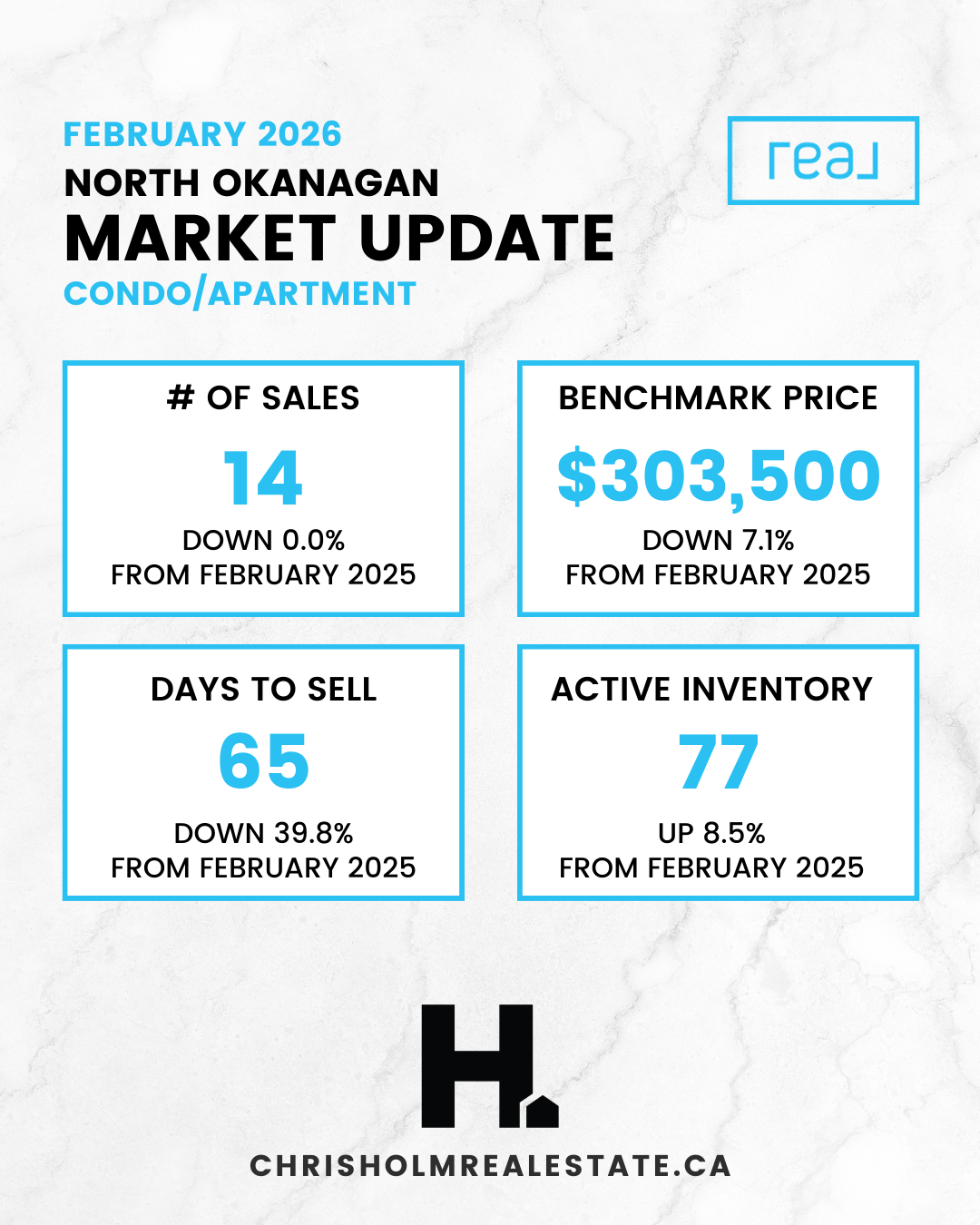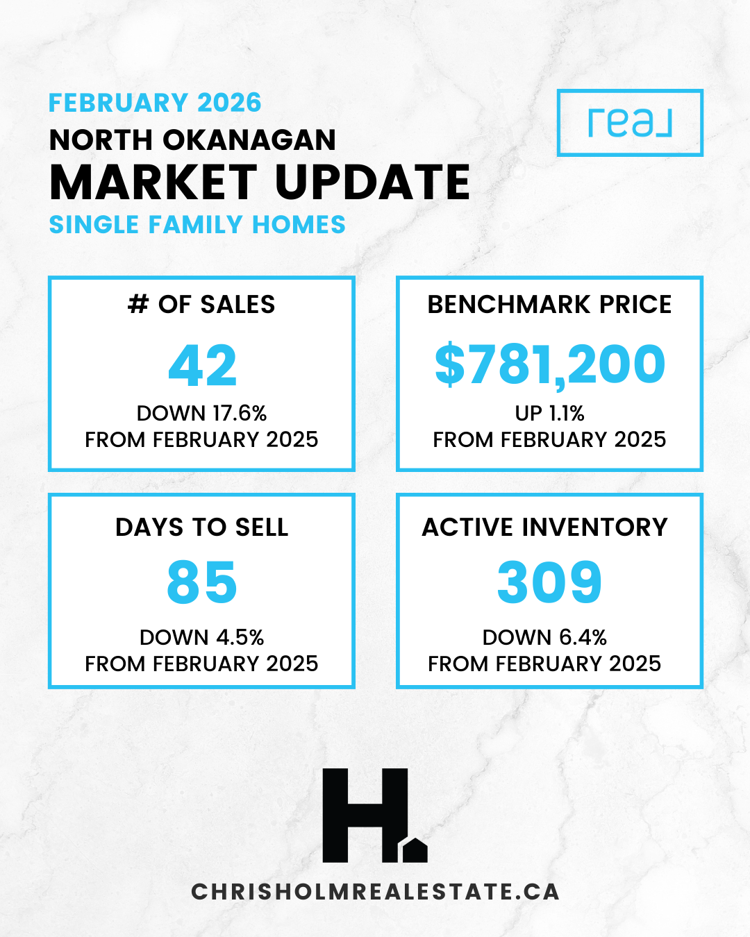Scroll to see what happened in North Okanagan real estate in FEBRUARY 2026.