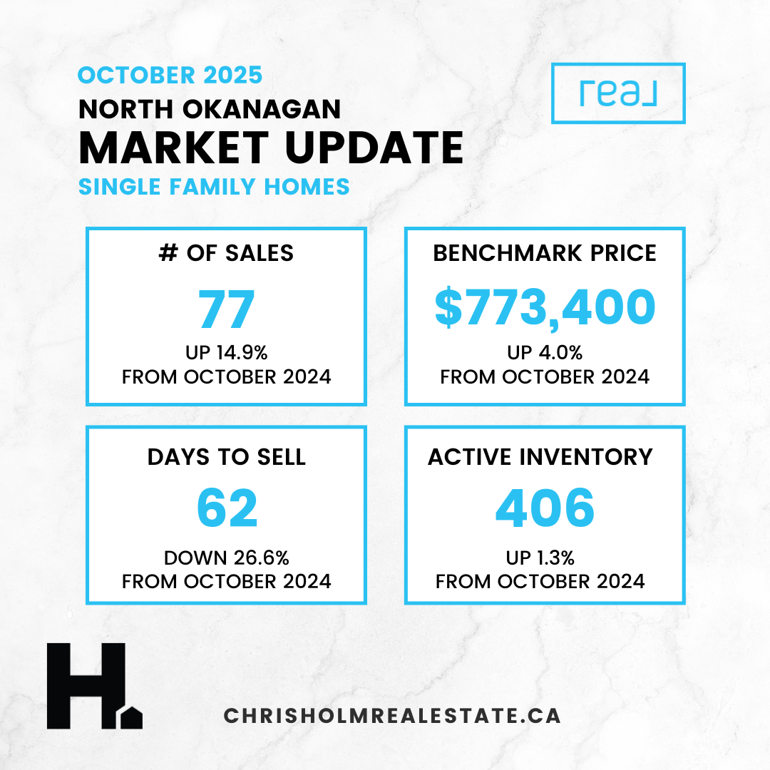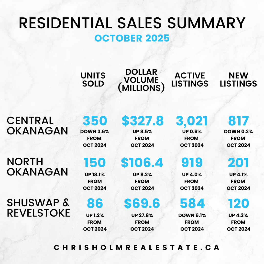 Scroll to see what happened in North Okanagan real estate in OCTOBER 2025.